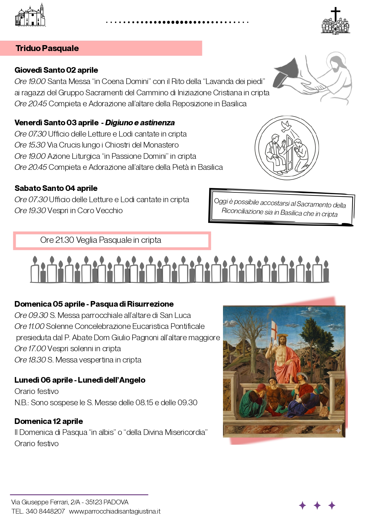 Con l’inizio della Settimana Santa, la Parrocchia di S. Giustina V. e M. ha predisposto il nuovo Bollettino Parrocchiale, che si può scaricare (come i precedenti) gratuitamente sia dal sito parrocchiale, come da questo sito alla pagina “Parrocchia“.